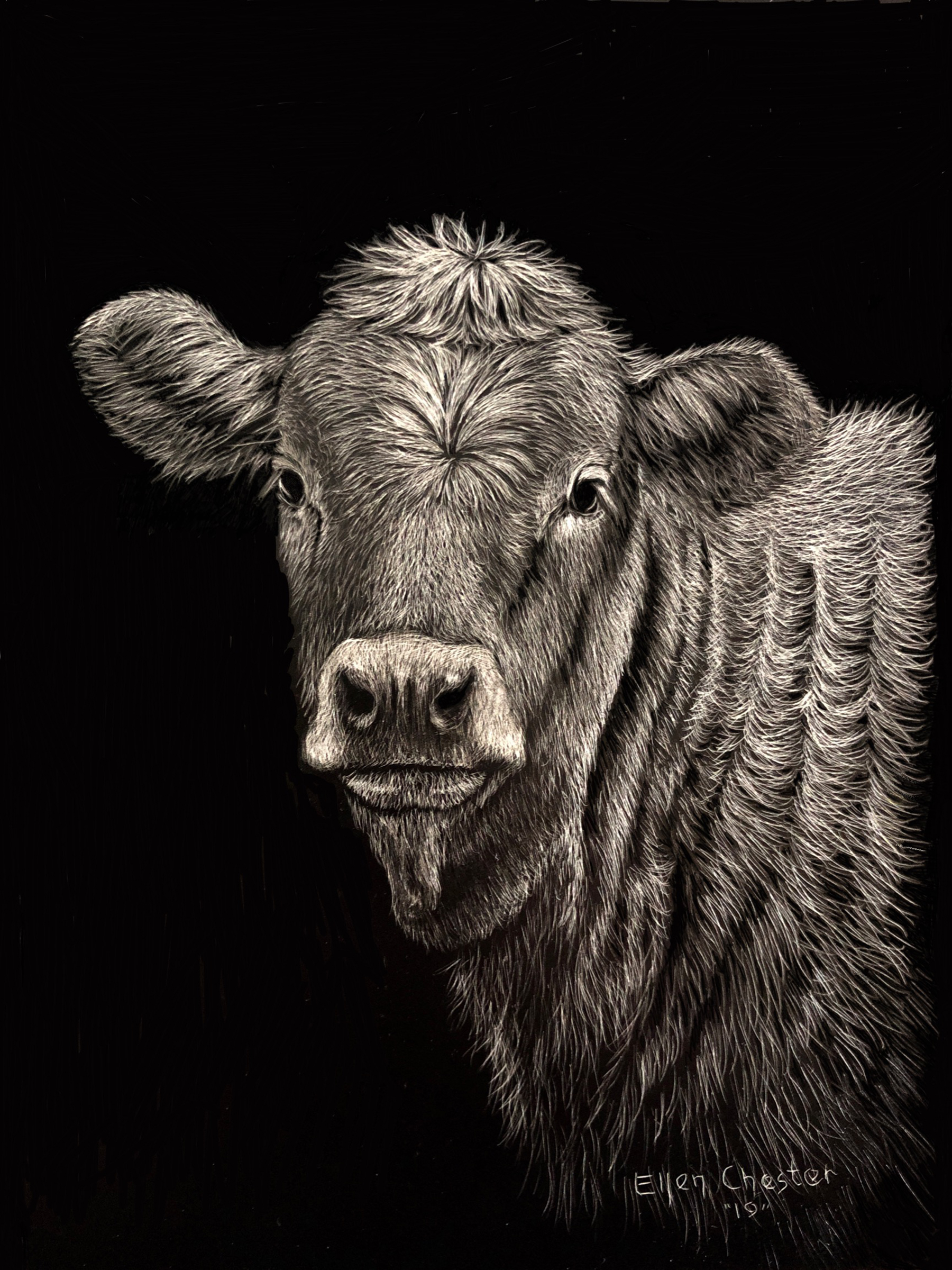 scratchboard cow